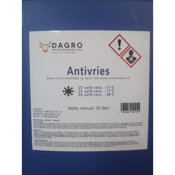 Blauw antivriesmiddel op basis van mono-ethyleenglycol.
