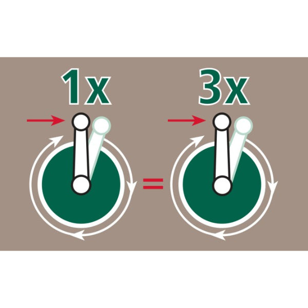 Sterke haspel voor 3x sneller op- afdraaien door versnelling.