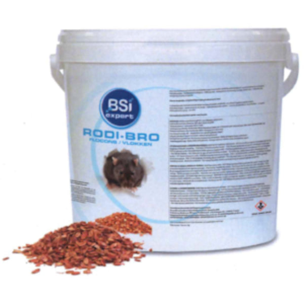 Rodi Bro is een Rodenticide op basis van havervlokken en 50 ppm brodifacoum.