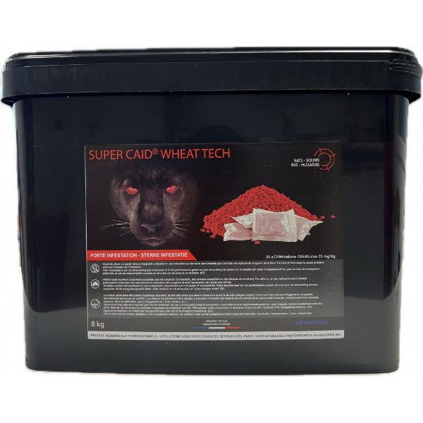 Super Caid in zakjes van 50 gram is een gebruiksklaar lokaas in graanvorm met een sterke aantrekkingskracht voor de bestrijding van bruine/ zwarte ratten en muizen. Zowel erkend voor gebruik binnen als buiten gebouwen.
