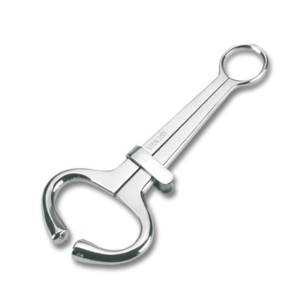 Neusklem 19 cm model Harms voor het begeleiden en in bedwang houden van koe of stier, met handige schuif om ervoor te zorgen dat de neusklem in de neus blijft zitten.