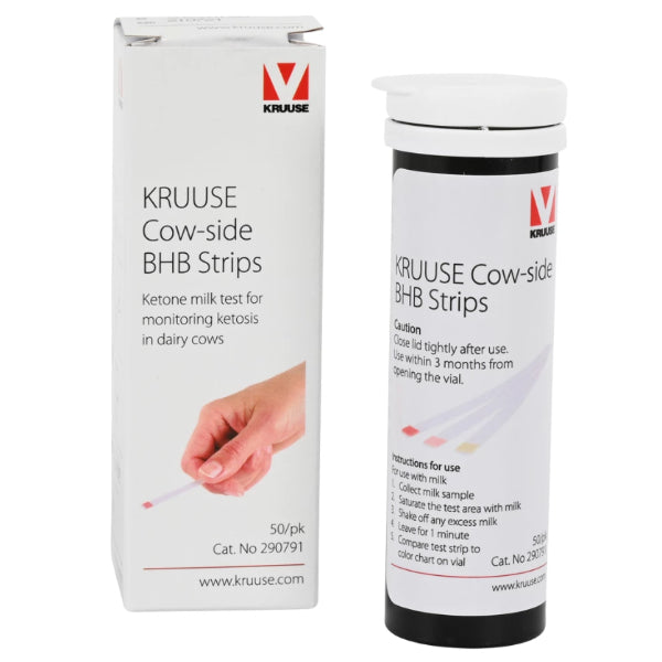 De KRUUSE Ketose Melk Teststrips zijn ontwikkeld om het gehalte aan betahydroxybuturaat (BHB) in melk te bepalen. Het is een nuttig hulpmiddel om te bepalen of de koe verhoogde niveaus van ketonenlichamen in de melk heeft, wat wijst op subklinische ketose.