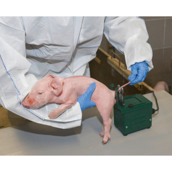 Voor het couperen van staarten bij biggen. Bedrijfsklaar in minder dan 1 minuut (+- 750°C). Inclusief verstelbare afstandshouder voor gelijkmatige staartlengtes.