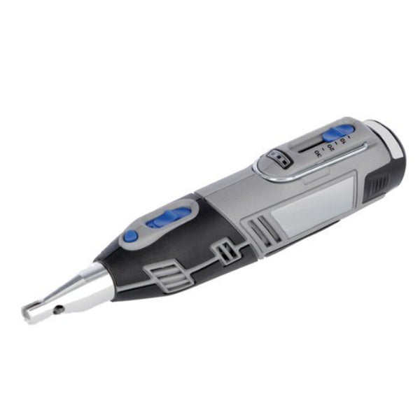 Wordt geleverd in een koffer compleet met lader en 1 accu. Op de machine is de aluminium beschermhuls en slijpsteen reeds voorgemonteerd.