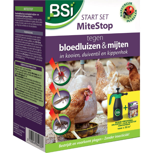 BSI startset MiteStop tegen bloedluizen en mijten,duiventil en kippenhok incl. sproeier