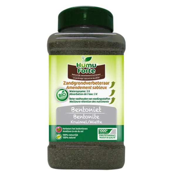 Bentoniet is een grijs-bruin meel van gesteente dat bestaat uit zeer fijne kleimineralen. Deze kleimineralen maken zandgrond beter bewerkbaar en verbeteren zijn structuur. Hierdoor worden voedingsstoffen beter vastgehouden en droogt de bodem minder snel uit.