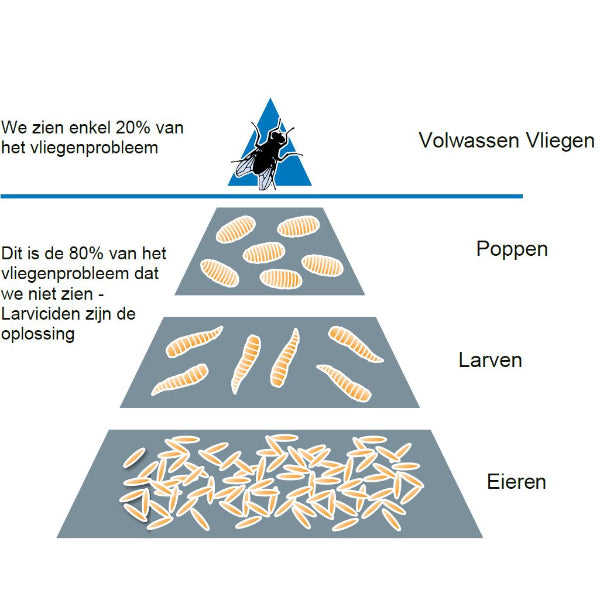 - Gemakkelijk toe te passen op kweekplaatsen van vliegen, bijvoorbeeld mest en ander rottend vochtig organisch afval.